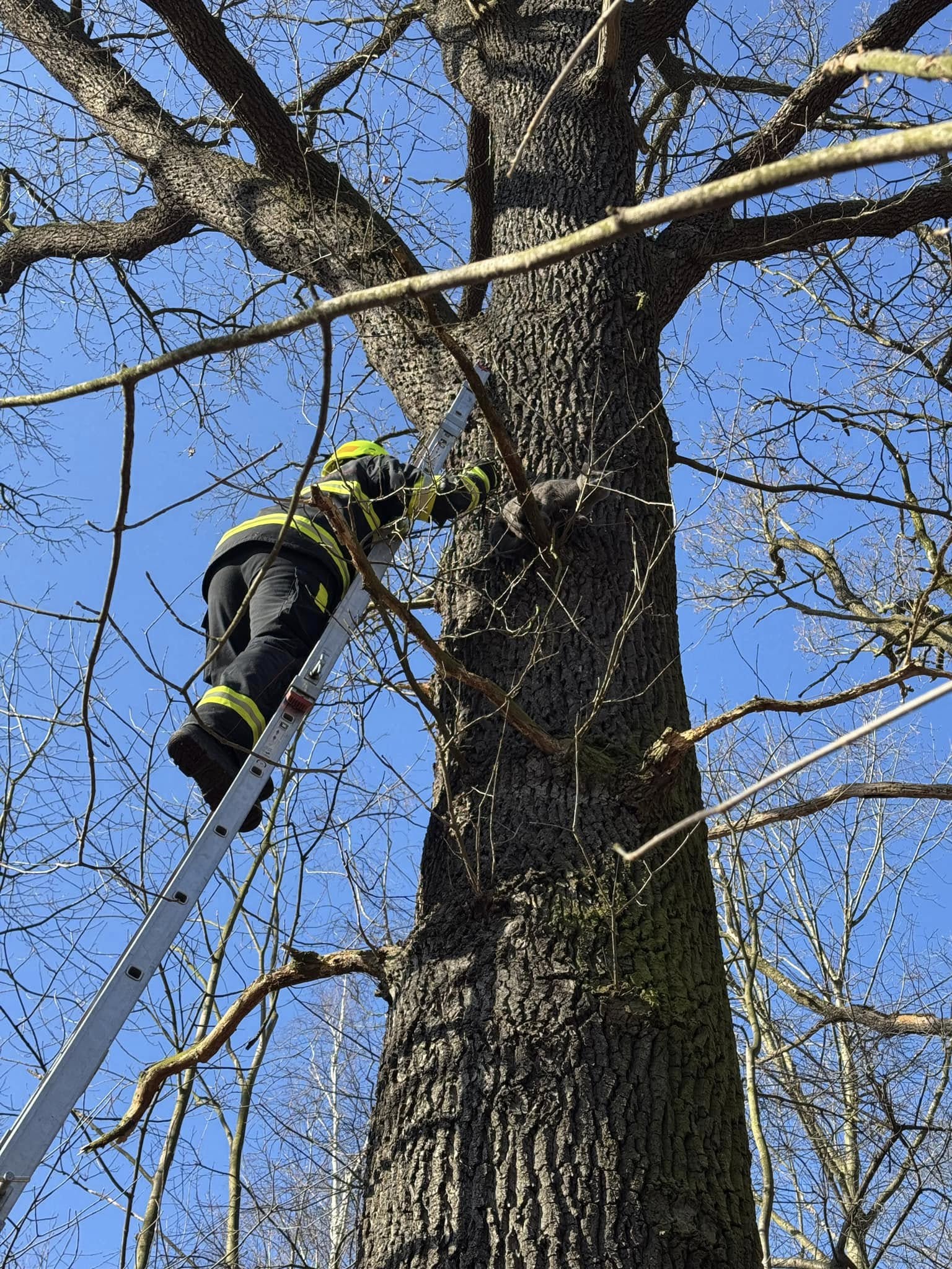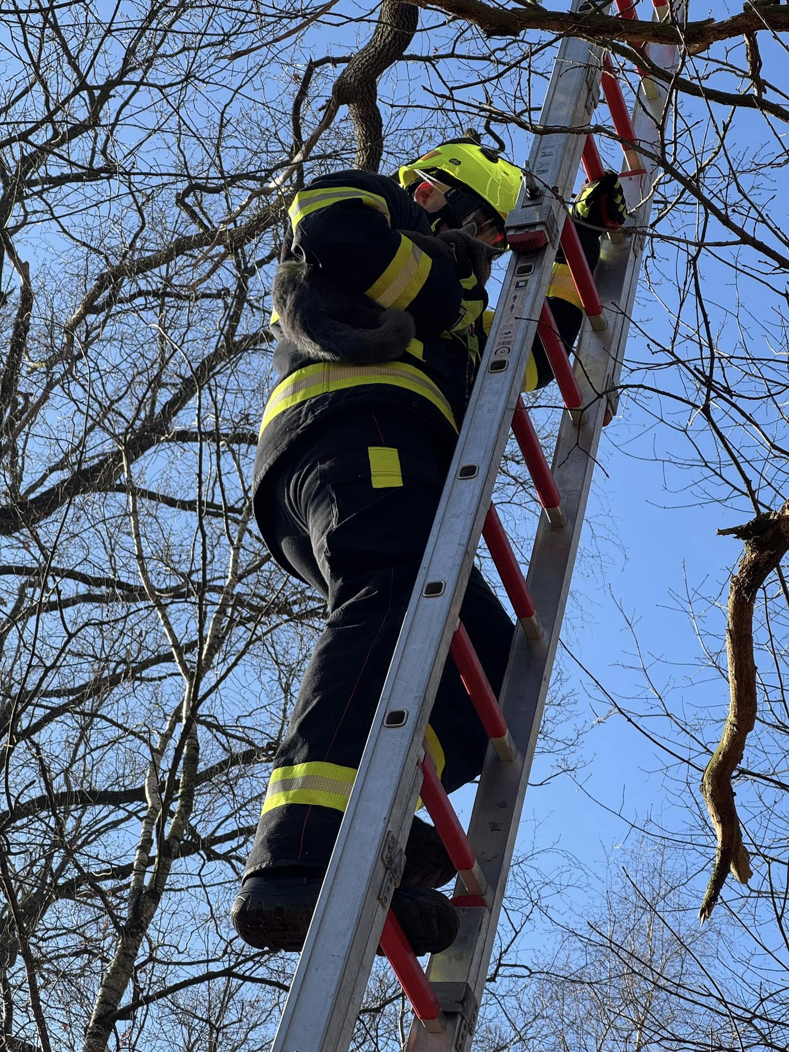 3. Dne 5. 2. 2025 byl JSDH Hostivice vyhlášen poplach – záchrana kočky ze stromu. Jednotka vyjížděla s DA Mercedes Benz – Sprinter v počtu 1+4 členů. Po příjezdu na místo jednotka zjistila, že jde o kočku, která se usadila cca 5m vysoko na stromě a byla vyděšená z předchozího randíčka s volně pobíhajícím psem. Jeden z členů ke kočce vyšplhal za pomoci nastavovacího žebříku. Co však nevěděl bylo, že micinka je majitelem černého pásku v karate. Po cca 3 minutách nevyrovnaného souboje se našemu členovi povedlo nahmatat vodítko a následně snést kočku na zem. Po předání majiteli nás nezapomněla informovat, že šlo při zápase o podvádění a pošle nás před disciplinární komisi. My děkujeme za hezký výkon a přejeme mnoho úspěchů oběma zápasníkům. Na místě společně s HZS Kladno.