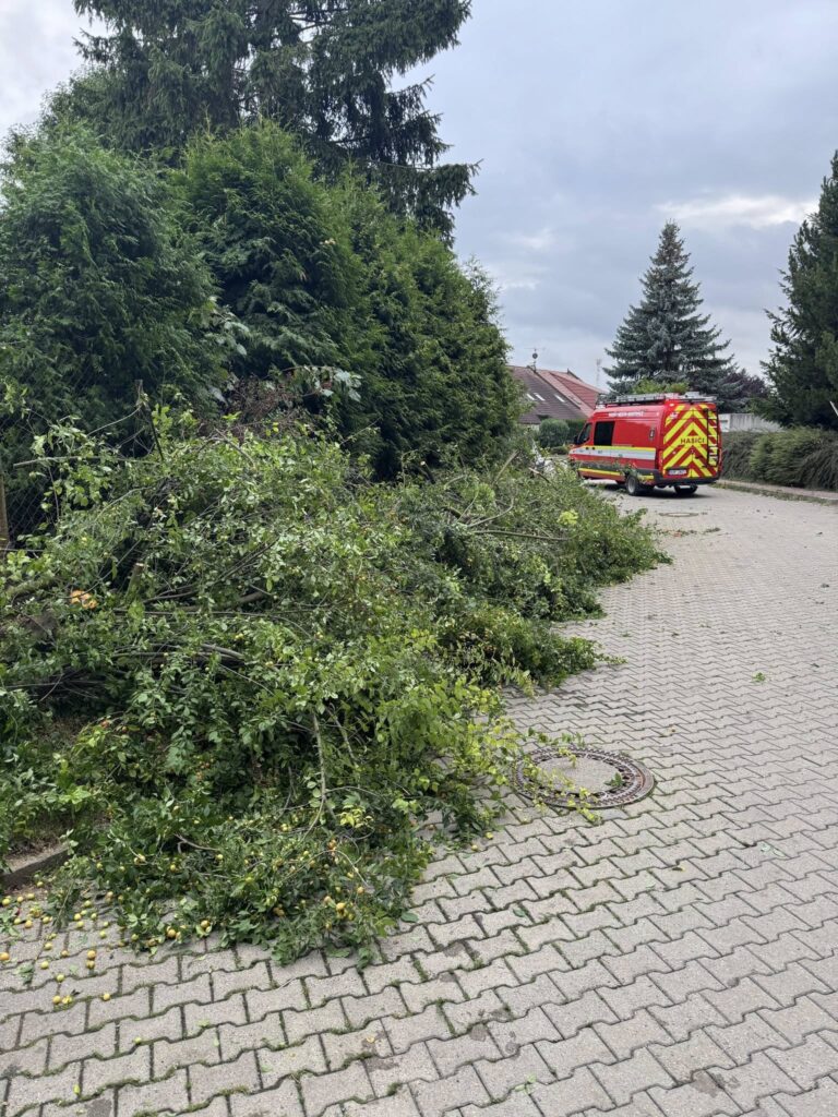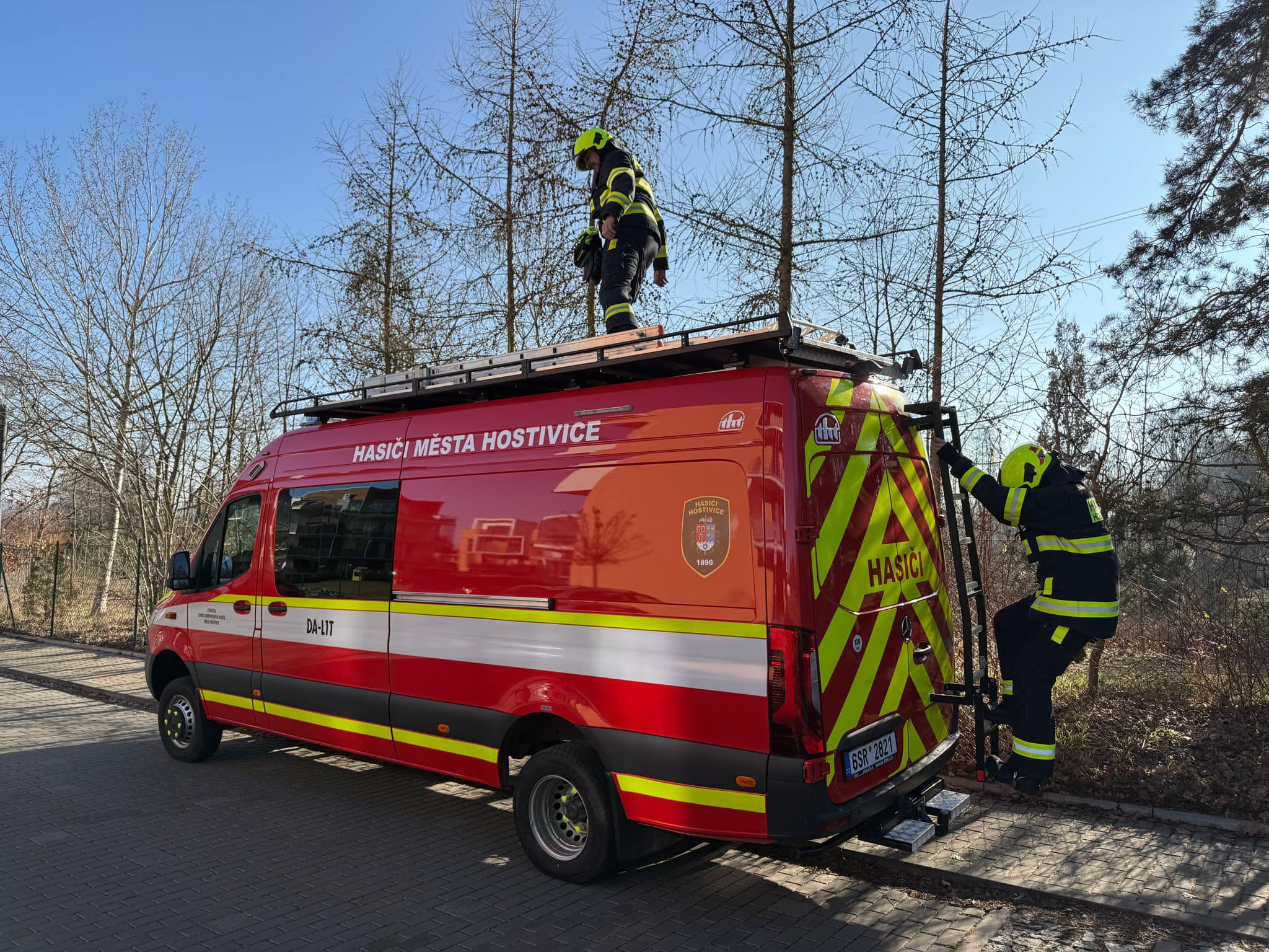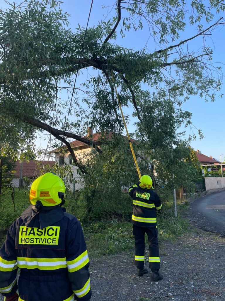 31. Dne 1. 6. 2025 byl JSDH Hostivice vyhlášen poplach – technická pomoc, odstranění stromu, hrozí pádem na rodinný dům v Hostivici. Jednotka vyjížděla s CAS 20 Mercedes Benz – Atego v počtu 1+4 členů a s DA Mercedes Benz – Sprinter v počtu 1+4 členů. Po příjezdu jednotka provedla odstranění části stromu pomocí teleskopické pily. Na místě společně s HZS Kladno.