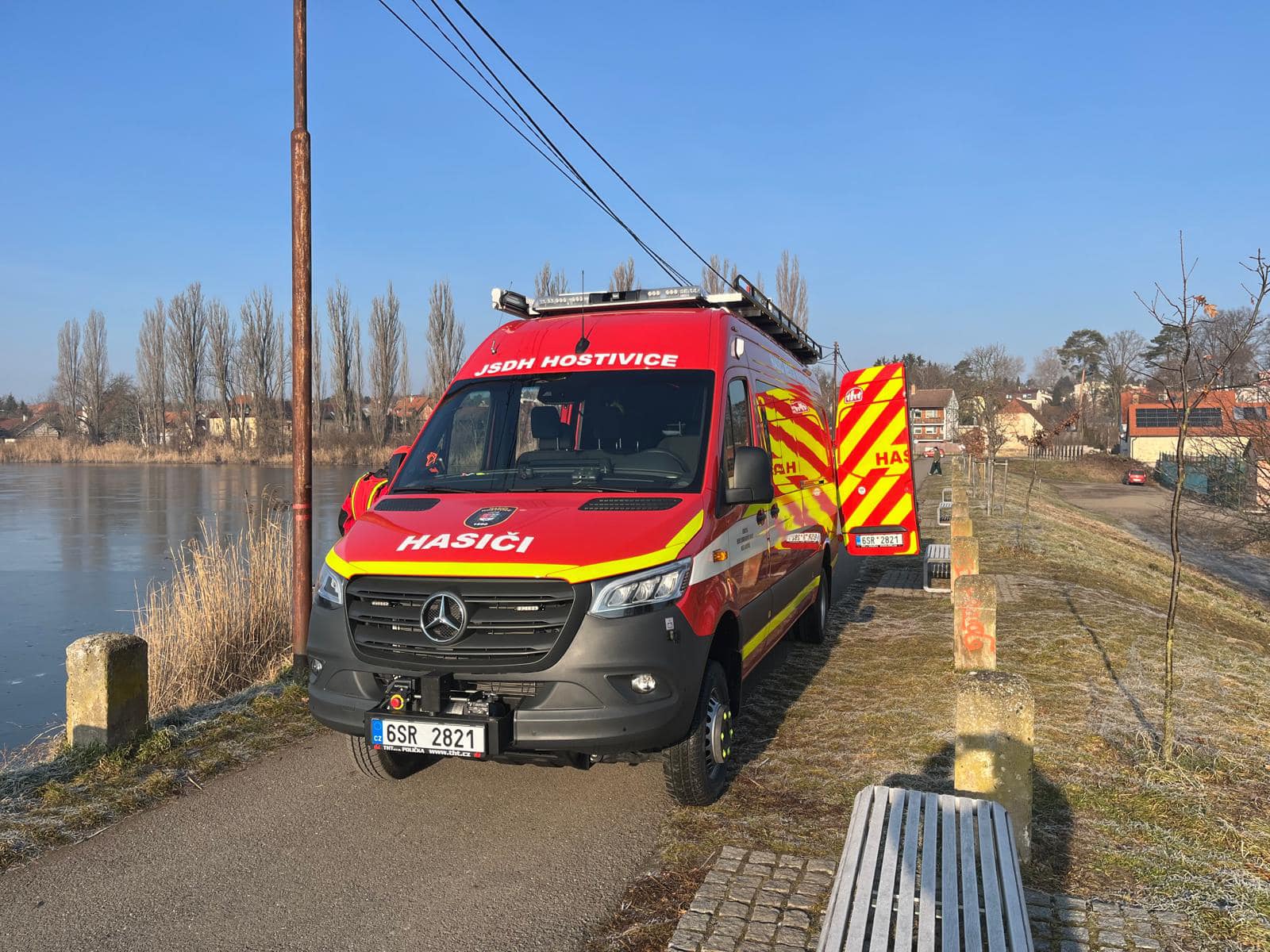 75. Dne 19. 12. 2025 byl JSDH Hostivice vyhlášen poplach – záchrana zvířat, pes uvízl v bahně rybníka, Hostivice. Jednotka vyjížděla s CAS 20 Mercedes Benz – Atego v počtu 1+4 členů. Po příjezdu na místo zásahu byla provedena záchrana psa pomocí nastavovacího žebříku a páteřní desky. Na místě společně s HZS Kladno.