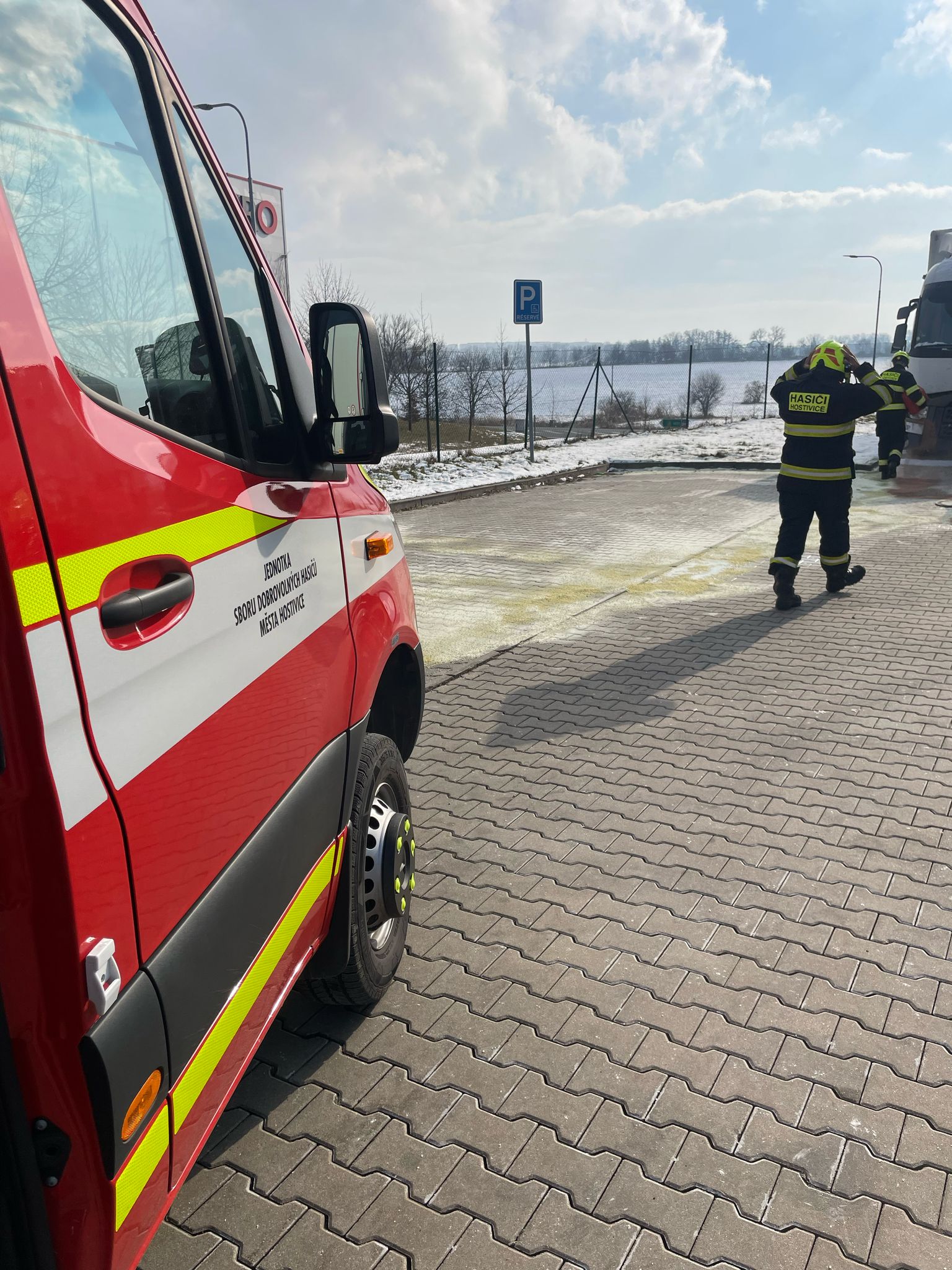 6) Dne 12. 2. 2025 byl JSDH Hostivice vyhlášen poplach – únik nebezpečných látek na komunikaci v Hostivici. Jednotka vyjížděla s CAS 20 Mercedes Benz – Atego v počtu 1+2 členů. Po příjezdu bylo zjištěno, že jde o únik nejspíš motorové nafty z neznámého prostředku o celkové délce cca 25m . Na likvidaci byl použit sorbent, odmašťovací kapalina a ženijní nářadí. Na místě společně s HZS Kladno a MP Hostivice.