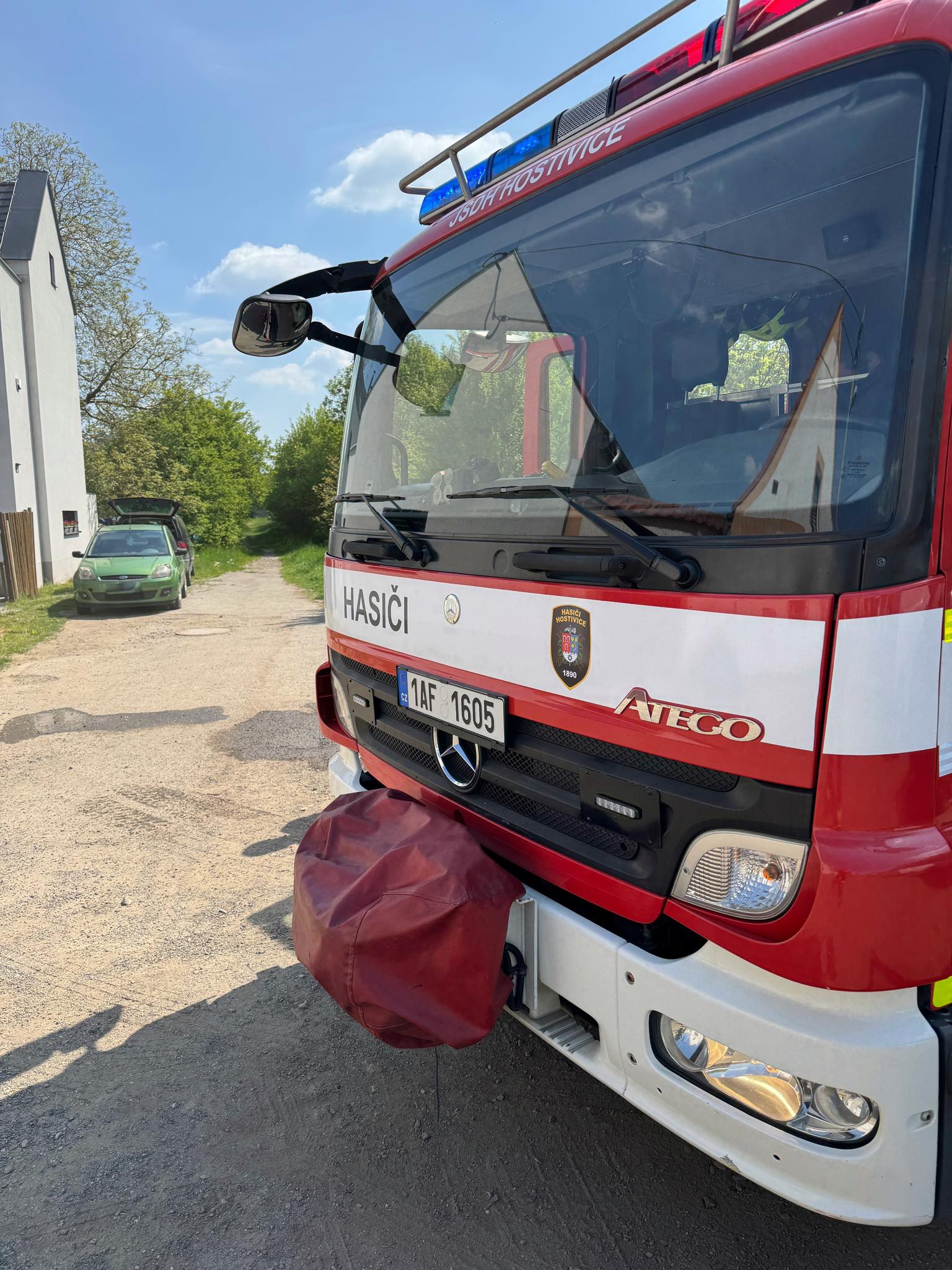 25. Dne 1. 5. 2025 byl JSDH Hostivice vyhlášen poplach – požár, neuhašené ohniště v Hostivici. Jednotka vyjížděla s CAS 20 Mercedes Benz – Atego v počtu 1+4 členů. Po příjezdu nám oznamovatel ukázal přesné místo zásahu. Jednotka provedla uhašení ohniště pomocí zádového hasícího vaku. Na místě společně s HZS Kladno.