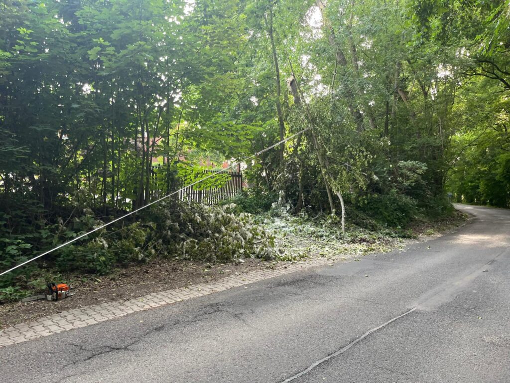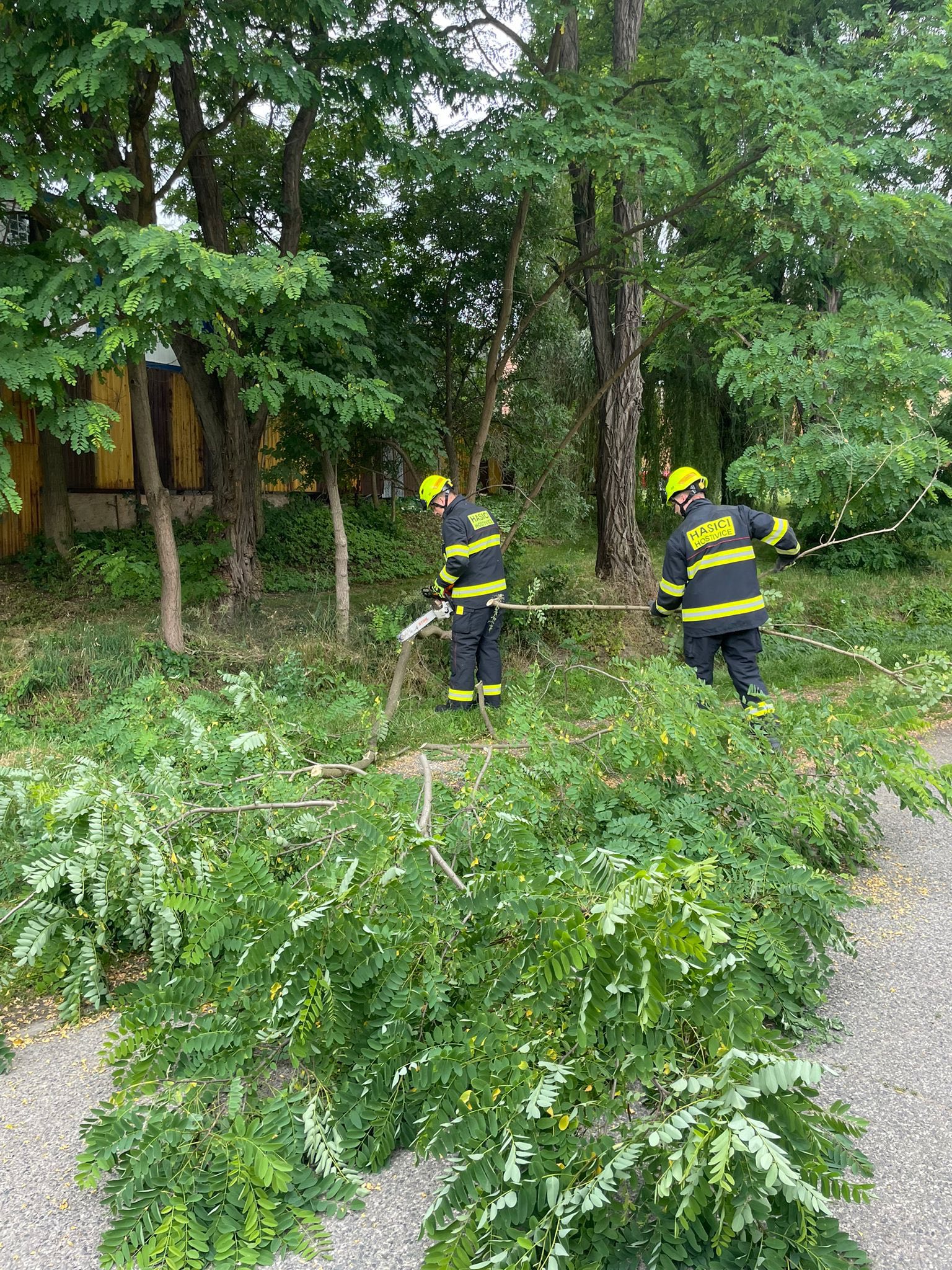 35. Dne 13. 6. 2025 byl JSDH Hostivice vyhlášen poplach – technická pomoc, odstranění stromu v Hostivici. Jednotka vyjížděla s CAS 20 Mercedes Benz – Atego v počtu 1+4 členů. Po příjezdu na místo bylo zjištěno, že se jedná o velkou větev na telefonních kabelech. Jednotka provedla likvidaci větve pomocí motorové pily, teleskopické pily a ženijního nářadí. Na místě společně s HZS Kladno a MP Hostivice.