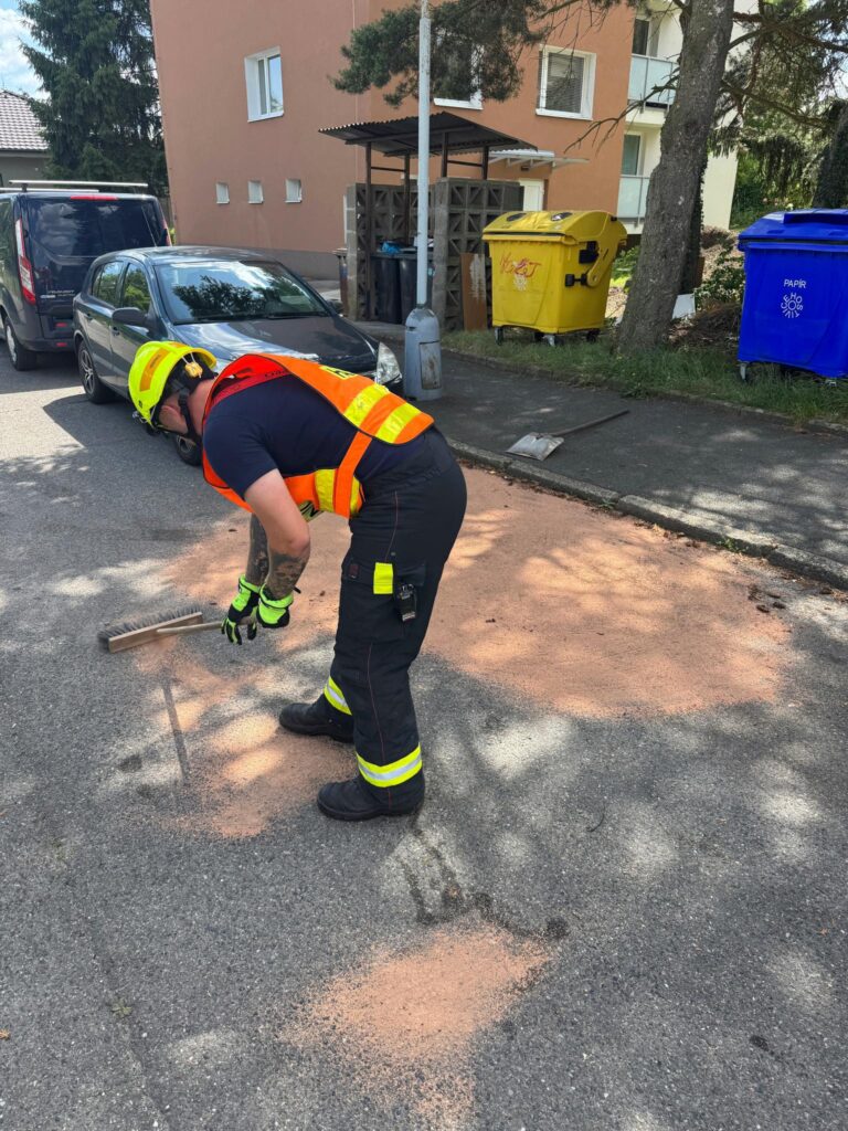 32. Dne 1. 6. 2025 byl JSDH Hostivice vyhlášen poplach – únik nebezpečných látek na komunikaci v Hostivici. Jednotka vyjížděla s CAS 20 Mercedes Benz – Atego v počtu 1+5 členů. Po příjezdu na místo jednotka provedla úklid pohonných hmot pomocí sorbentu a ženijního nářadí. Na místě společně s HZS Kladno.