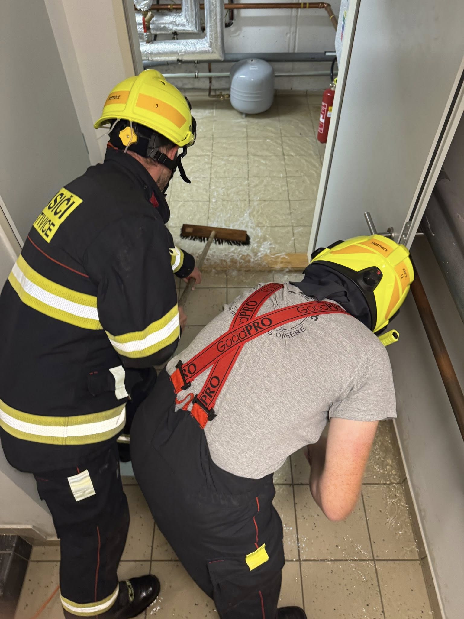 56. Dne 24. 9. 2025 byl JSDH Hostivice vyhlášen poplach – technická pomoc, uzavření tekoucí vody v Hostivici. Jednotka vyjížděla s CAS20 Mercedes Benz – Atego v počtu 1+3 a DA Mercedes Benz – Sprinter v počtu 1+1 členů. Po příjezdu na místo zásahu jednotka provedla uzavření vody a následně čerpání vody pomocí ženijního nářadí a vysavače.