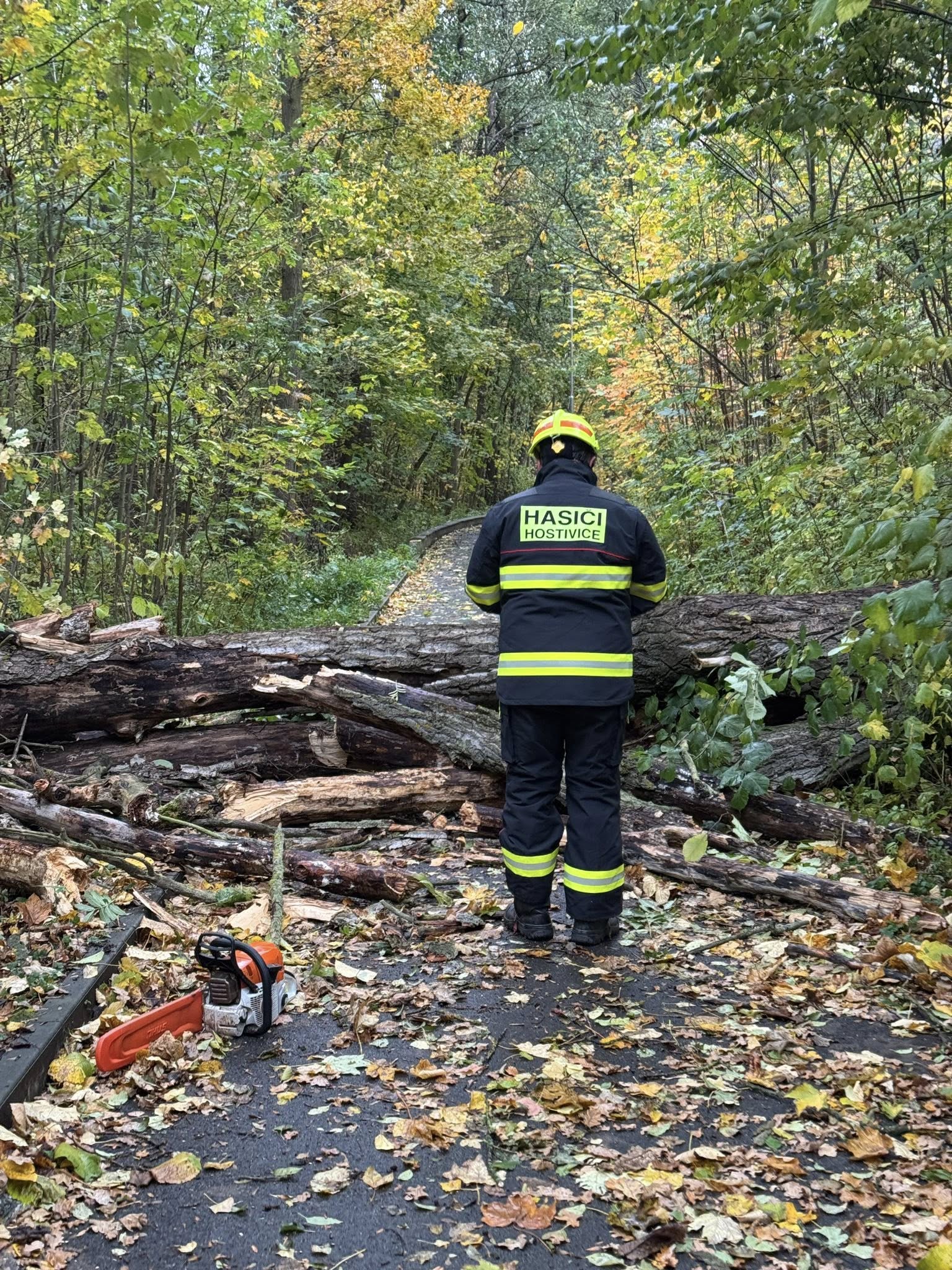 62. Dne 26. 10. 2025 byl JSDH Hostivice vyhlášen poplach – technická pomoc, odstranění stromu v Hostivici. Jednotka vyjížděla s CAS 20 Mercedes Benz – Atego v počtu 1+4 členů. Po příjezdu na místo zásahu jednotka provedla odstranění stromu pomocí motorové pily a ženijního nářadí. Na místě společně s MP Hostivice.