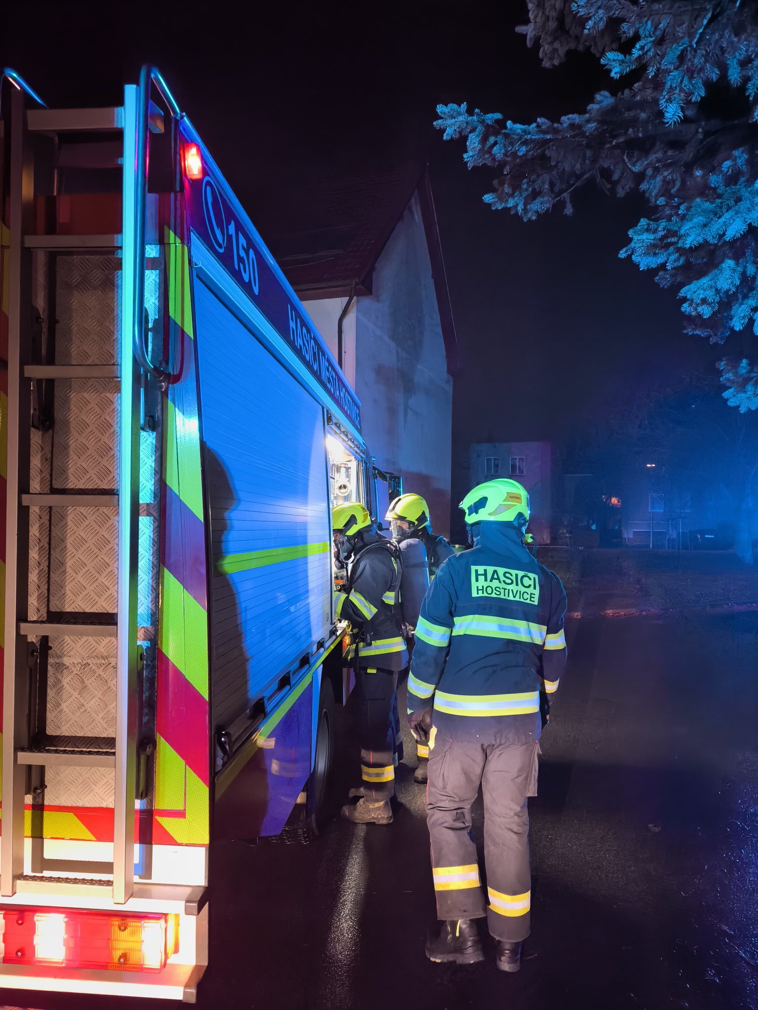 58. Dne 10. 10. 2025 byl JSDH Hostivice vyhlášen poplach – záchrana osob z uzavřených prostor v Hostivici. Jednotka vyjížděla s DA Mercedes Benz – Sprinter v počtu 1+4 členů. Po příjezdu na místo zásahu jednotka na žádost PČR provedla násilný vstup do bytu. Na místě společně s HZS Kladno, MP Hostivice a ZZS SČK