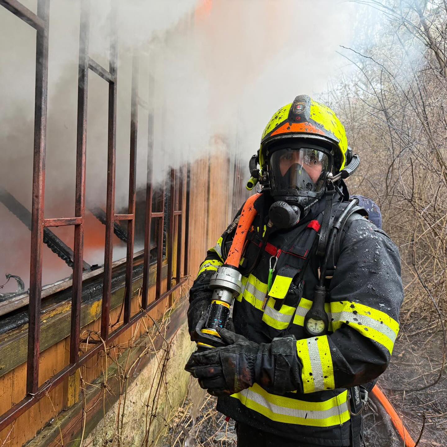 66. Dne 14. 11. 2025 byl JSDH Hostivice vyhlášen poplach – požár, odpadu v Hostivici. Jednotka vyjížděla CAS 20 Mercedes Benz – Atego v počtu 1+3 členů. Po příjezdu na místo bylo zjištěno, že jde o zahoření odpadu v plastové popelnici a na místě již zasahují naši kamarádi ze ZZS SČK. Jejich perfektní zásah pomocí fyziologického roztoku jsme překontrolovali a dotáhli k dokonalosti. Když oni hasí, my třeba příště někoho zachráníme, tomu se říká spolupráce složek IZS. 🤭😅